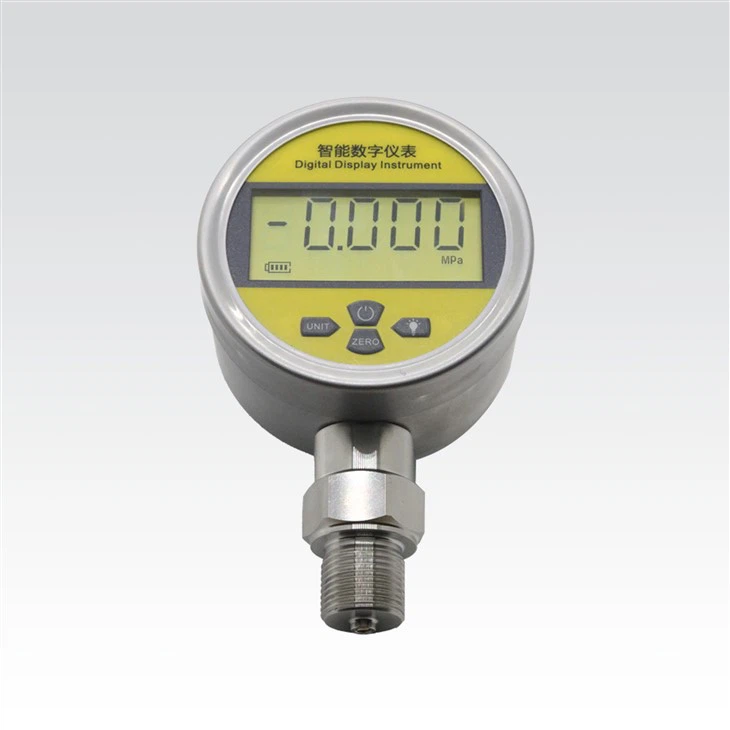PT118 digital pressure gauge meter intelligent high precision hydraulic vacuum pressure gauge sensor is a fully electronic structure, using battery power supply, easy to install on site. The front end uses high-precision diffusing silicon sensor, the output signal is amplified by the high-precision, low-temperature drift amplifier, and sent to the high-precision A / D converter, which is converted into digital signals that can be processed by the microprocessor. After computing processing, the actual pressure value is displayed by the LCD display.The battery power supply digital display pressure gauge is flexible to use, simple to operate, easy to debug, safe and reliable. Widely used in hydropower, tap water, petroleum, chemical, mechanical, hydraulic and other industries, the pressure of fluid media measurement display